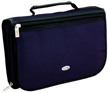 Durable, polyester Bible cases with three sections. One section can be zipped independently, creating practical ways to store notes and study books. Includes a cellphone pouch, two pen loops, four credit card slots and a small zipped mesh inner pocket.