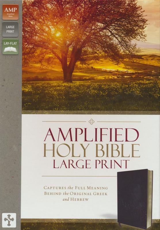 The Amplified Bible captures the full meaning behind the original Greek and Hebrew. It is based on the philosophy that a given word may have a multitude of meanings. This translation's purpose is to reveal any clarifying meanings that may be concealed by traditional translation methods. A unique system of punctuation, italics, references, and synonyms to unlock subtle shades of meaning as found in the original languages is used inside to get the full meaning of the text. Black letter edition, study notes, footnotes, historical background, archaelogical notes, 8 pages of full color maps, book introductions, cross references, double column format, and bibliography. This is the large print edition, with 12 point type.