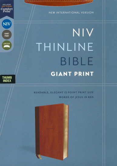 The NIV Giant Print Thinline Bible captures the depth and beauty of the Bible in a take-anywhere size. With a new custom typeface that is designed to be comfortable on the eyes, this Bible delivers a more pleasant reading experience. Measuring a little more than an inch thick, it is perfect to take to work, travel, church, and Bible study for on the go access to God's Word.